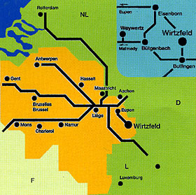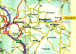 B-4760 Büllingen In Wirtzfeld fahren Sie die Straße (Pfeil) zwischen der Gemeindeschule und dem Hotel Drosson herauf. ![]() ![]() |